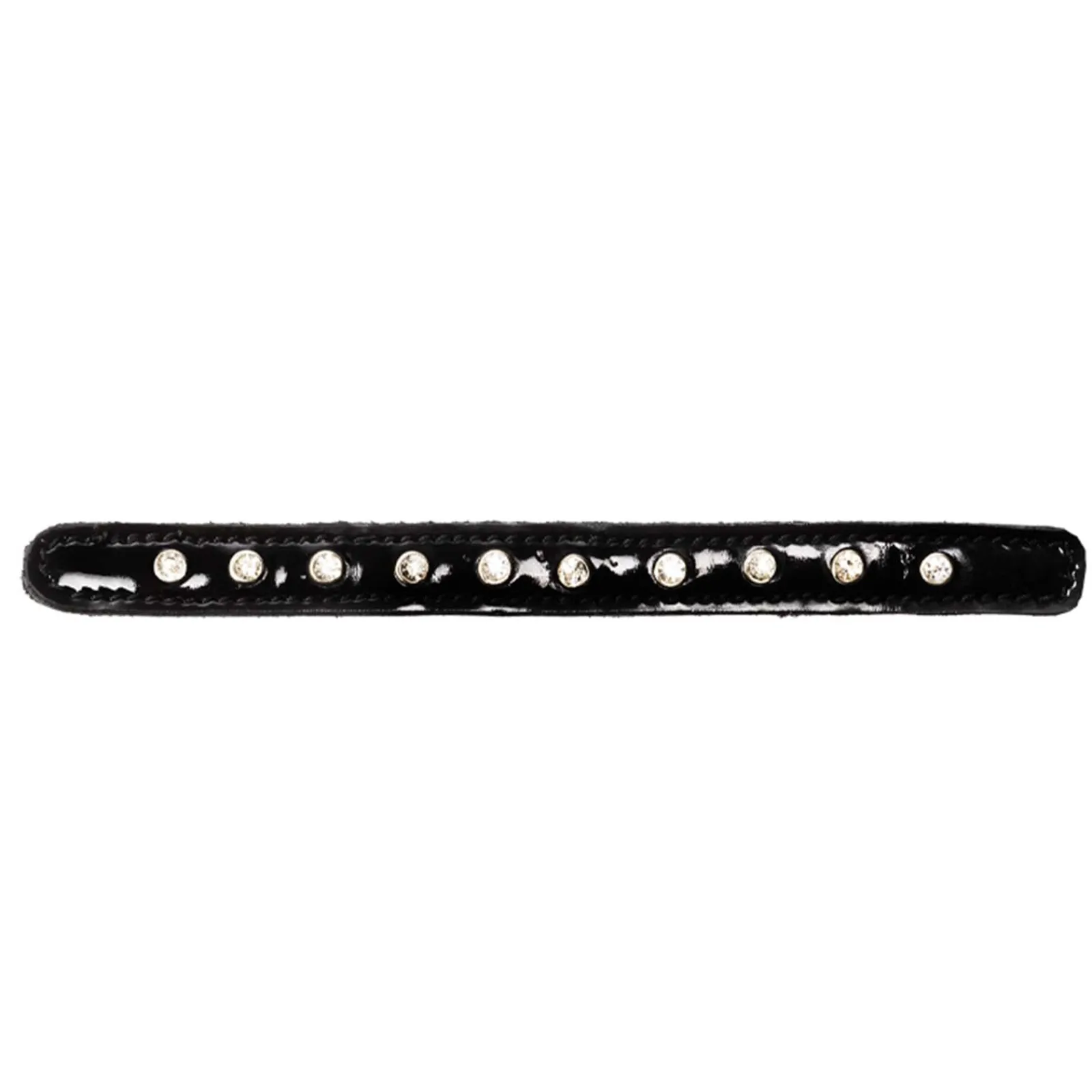 Tarroilla Kiinnitettavat Koristenauhat Mustasta Kiiltonahasta Valkoisilla Strasseilla Leyla Rintaremmiin.