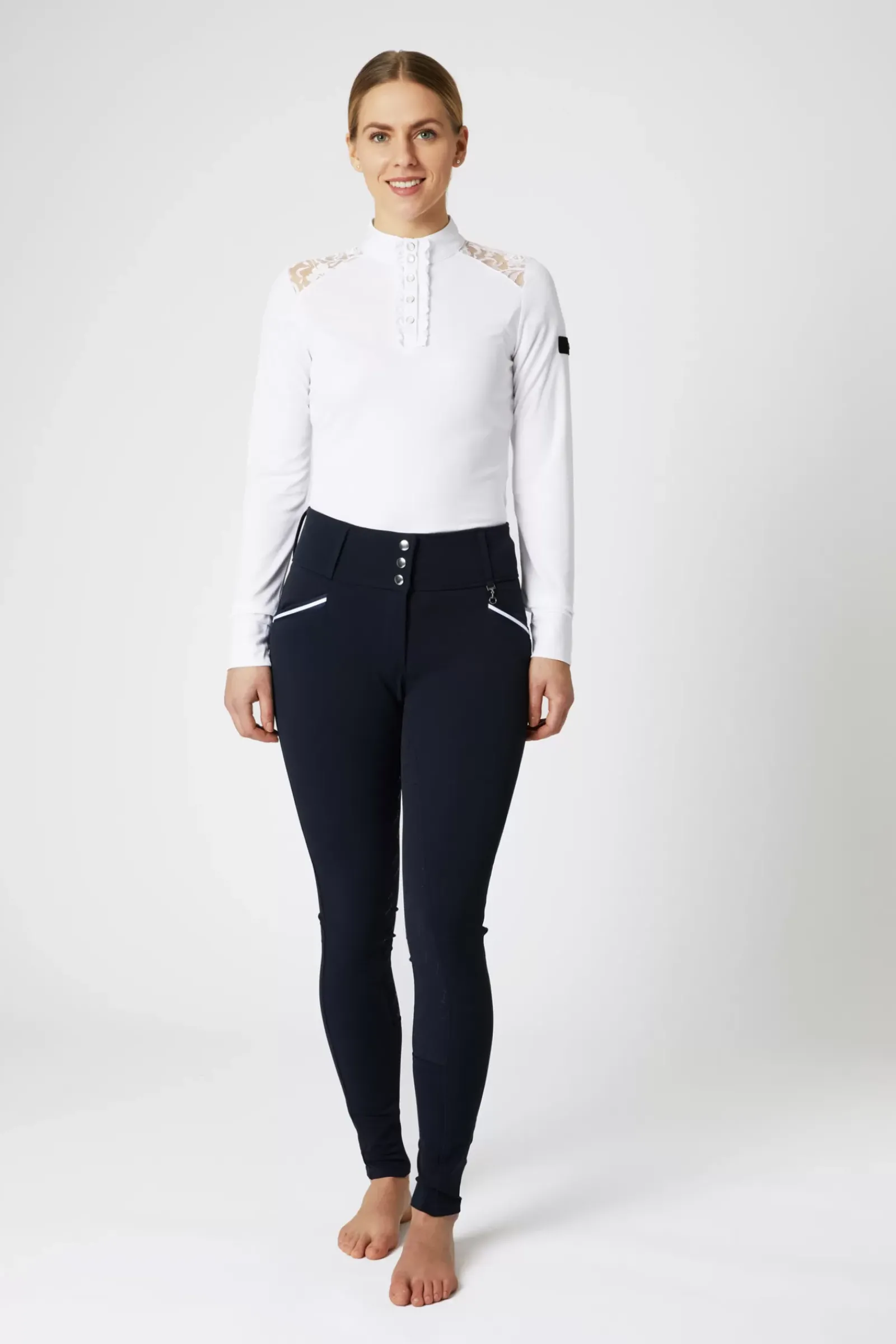 Vareiltaan Ja Muodoltaan Klassisissa * Della Ratsastushousuissa On Korkea Vyötaro.Tehostetereet Ovat Imartelevat, Ja Silikonipainatetut Kokopaikat Antavat Erinomaisen Pidon Satulassa.Saatavissa Myos Polvipaikoilla (#36691).