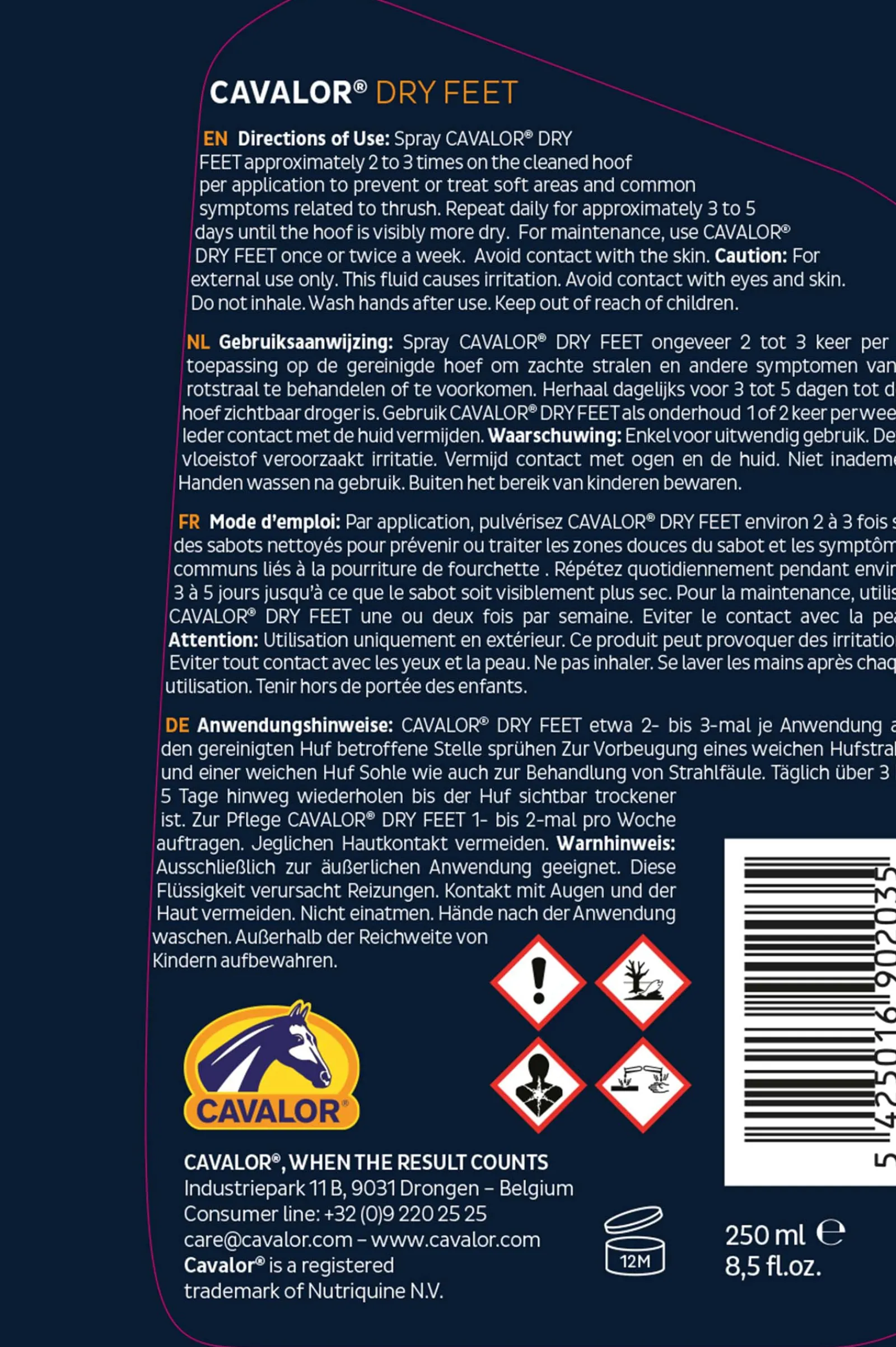 Cavalor Dry Feetin Luonnollinen Koostumus Sisaltaa Prebiootteja Ja Probiootteja.Sen Edistama Hyva Mikrofloora Tukee Aktiivisesti Kavioiden Ja Sateiden Luonnollista Vastustuskykya.Cavalor Dry Feetin Uusi Koostumus On 100 % Luonnollinen Ja Sisaltaa Hyvien Bakteerien (Probioottien) Ja Inuliinin (Prebiootti) Yhdistelman.Inuliini Edistaa Tuotteessa Olevien Probioottien Ja Kavioissa Jo Olevien Hyodyllisten Mikro-Organismien Aktiivisuutta.Yhdessa Ne Lisaantyvat Koko Kavion Pinnalle Vahentaen Aktiivisesti Sademadan Riskia.