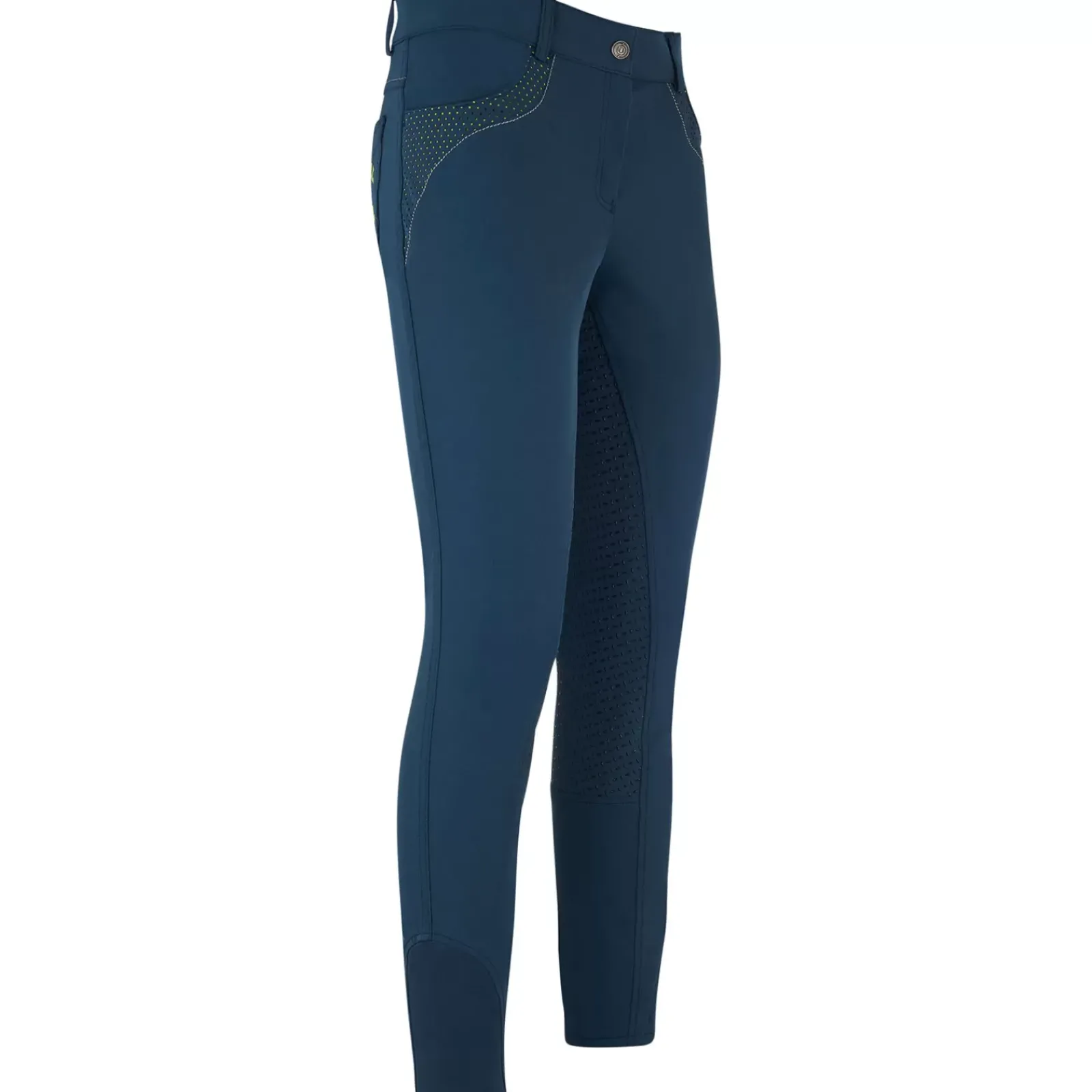 Classic Cut With Medium-High Waistband And Full Seat. Beautiful Breeches With Four Pockets. Swing Pockets Are The Front With Curved Access And Perforated Contrast Holes, And A Curved Decorative Seam. Sewn-On Rear Pockets With Hole Pattern And Contrast Embellishment, And Curved Decorative Seam. A Glitter Strap Runs Horizontally Across The Pass, Between The Rear Of The Waistband And The Pockets On The Rear. The Waistband Features A Button With Engraved Imperial Riding Logo With Horseshoe And Crown.Elastic Leg Gathers Ensure Pleasant Wearing Comfort. The Fabric Used Consists Of A Particularly Low-Maintenance And Comfortable 4-Way Stretch. Let’S Ride!