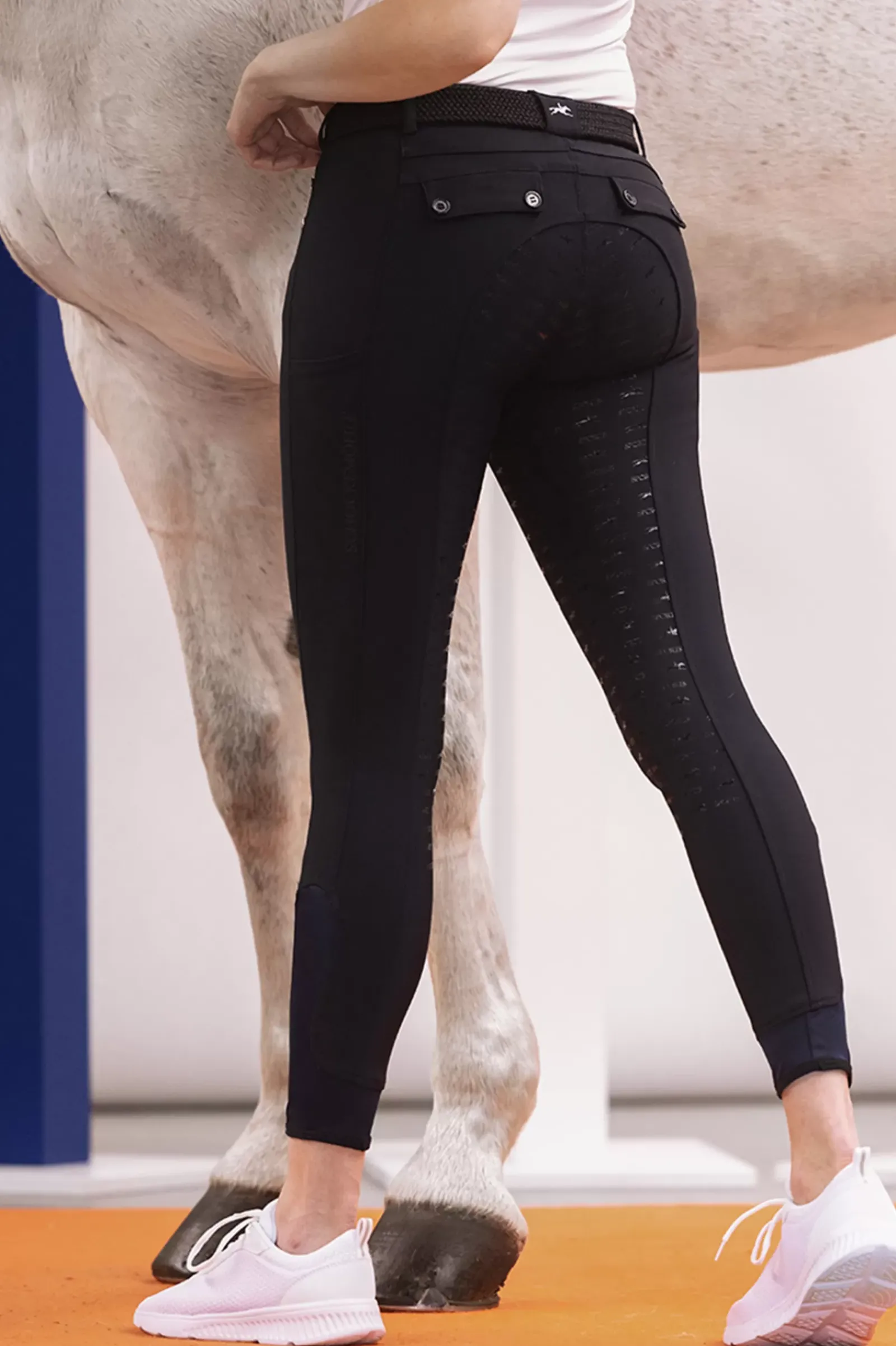 A Sporty And Cool Look Characterizes The Breeches Jolene Fs From Schockemohle Sports. They Adapt To The Body Shape Very Well, But Are Dimensionally Stable And Thus Give The Rider A Sporty Silhouette. Flap Pockets With Two Buttons, A Horse Logo Embroidery On The Back Wide Belt Loop And A Logo Silicone Print On The Left Side Offer Nice Visual Details. In Addition, The Breeches Have Practical Cell Phone Pockets On The Sides.