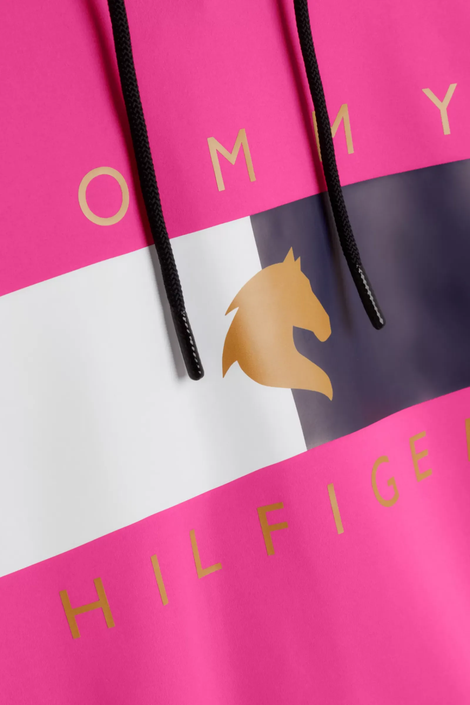 Huppari, Jossa Resori Vyötarolla Ja Hihansuissa.Huppu On Vuorattu Tommy Ithaca Stripe -Tyylilla, Ja Siina On Kiristysnyorit, Joissa On Kumiset Sulkimet.Hupun Ulkoosassa On Hilfiger-Kirjonta Ja Rinnassa H Horse -Grafiikkapainatus.