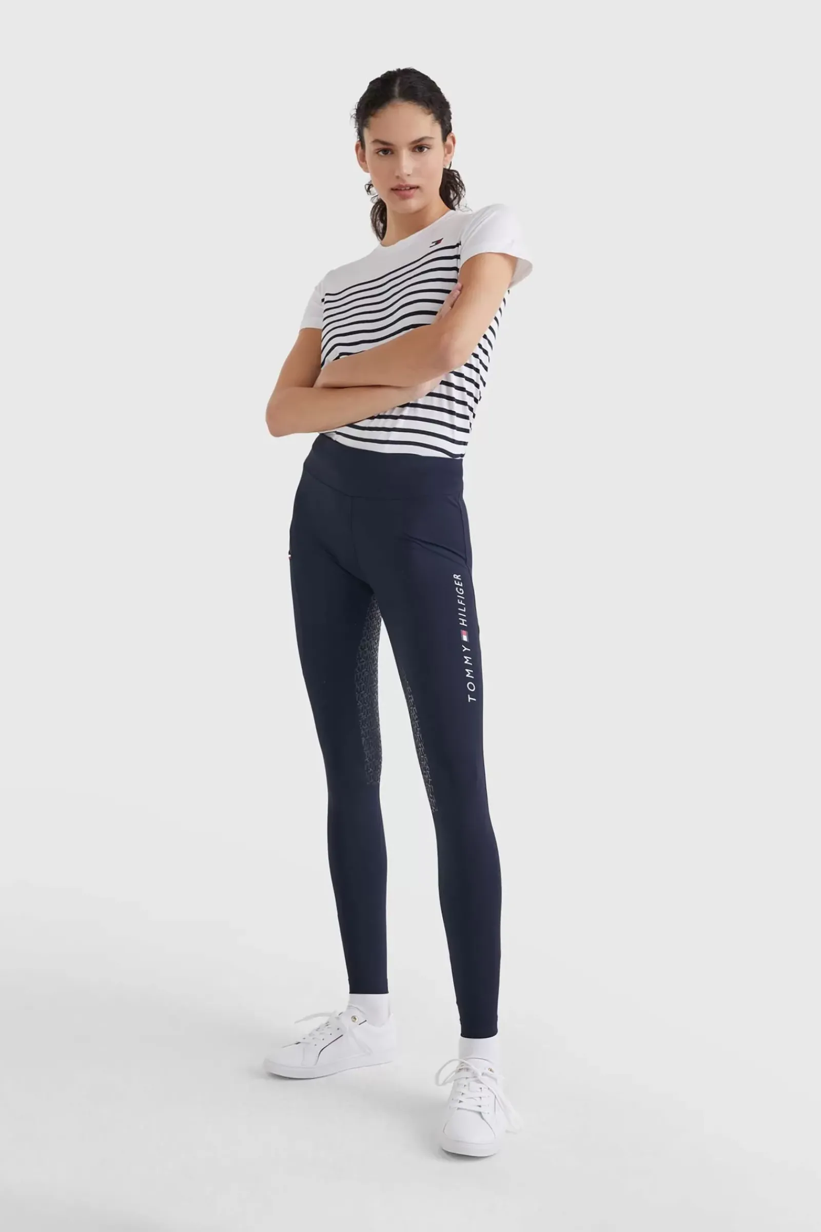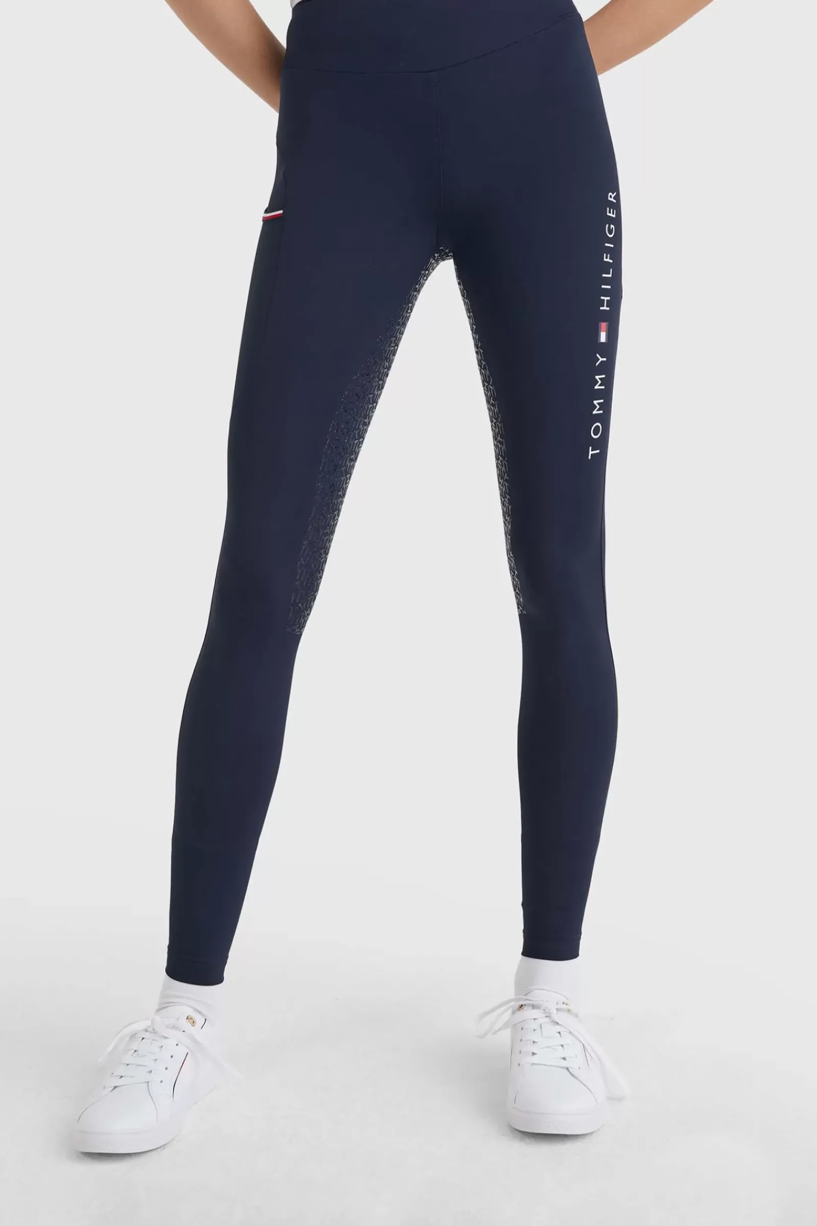 Tommy Hilfigerin Kokopaikkaiset Ratsastusleggingsit Levealla, V-Muotoisella Vyötaronauhalla, Joka Muotoilee Ja Istuu Taydellisesti.Ratsastusleggingsien Oikeassa Reidessa On Tasku Alypuhelimelle Seka Brodeerattu Logo Edessa Vasemmalla Puolella Vyötaronauhan Alapuolella.Niissa On Th Global-Raitalenkki Takana Vyötaronauhan Alapuolella Seka Tommy Hilfiger-Painatus Vasemmassa Reidessa.