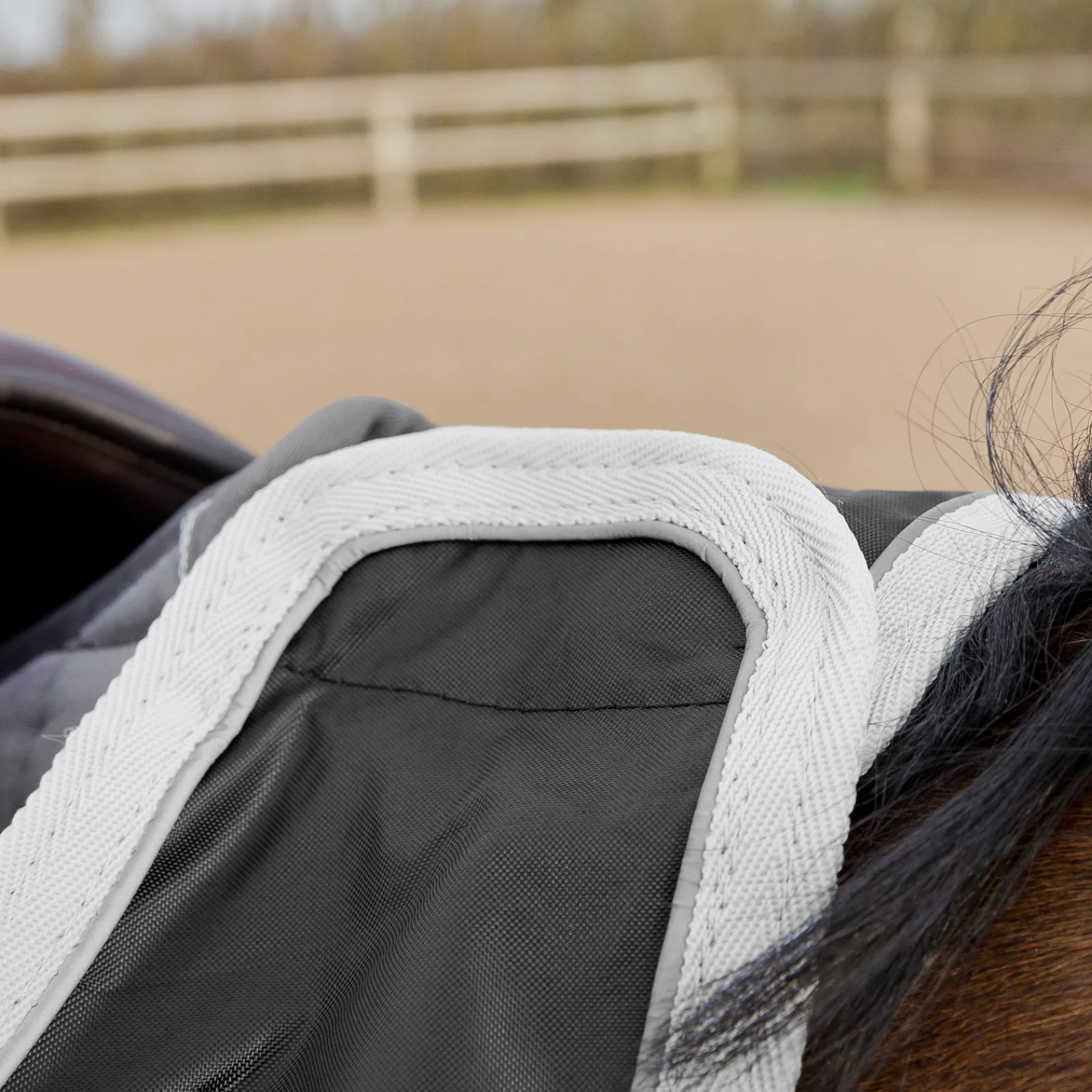 Jos Joudut Ratsastamaan Muissakin Kuin Ihanteellisissa Saaolosuhteissa, Kuten Sateella, Sumussa Tai Tihkusateella, Tama On Juuri Oikea Ratsastusloimi Sinulle. Tama Loimi Pitaa Viileyden Loitolla Hevosestasi Ankeissa Saaolosuhteissa Ja Tyylikas, Kontrastivarinen Ja Heijastava Saumanauha Lisaa Turvallisuutta Valaistuksen Ollessa Vahemman Ihanteellinen. Ratsasta Luottavaisena Siita, Etta Tulet Nahdyksi. Dupontin Teflonilla Pinnoitettu Nailon Kestaa Saata Jopa Paivittaisessa Kaytossa, Ja Se Sailyttaa Hyvan Ulkonaon.