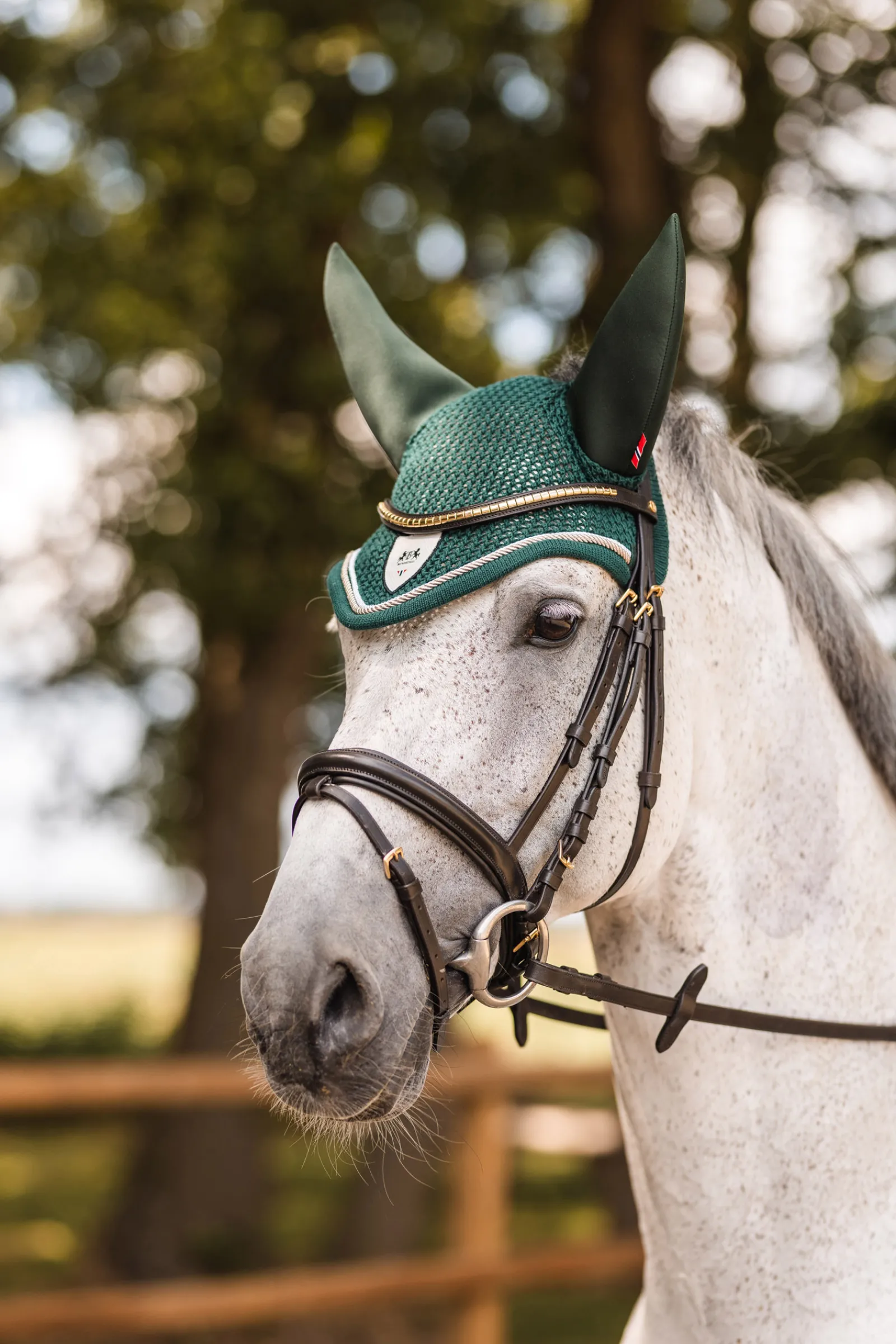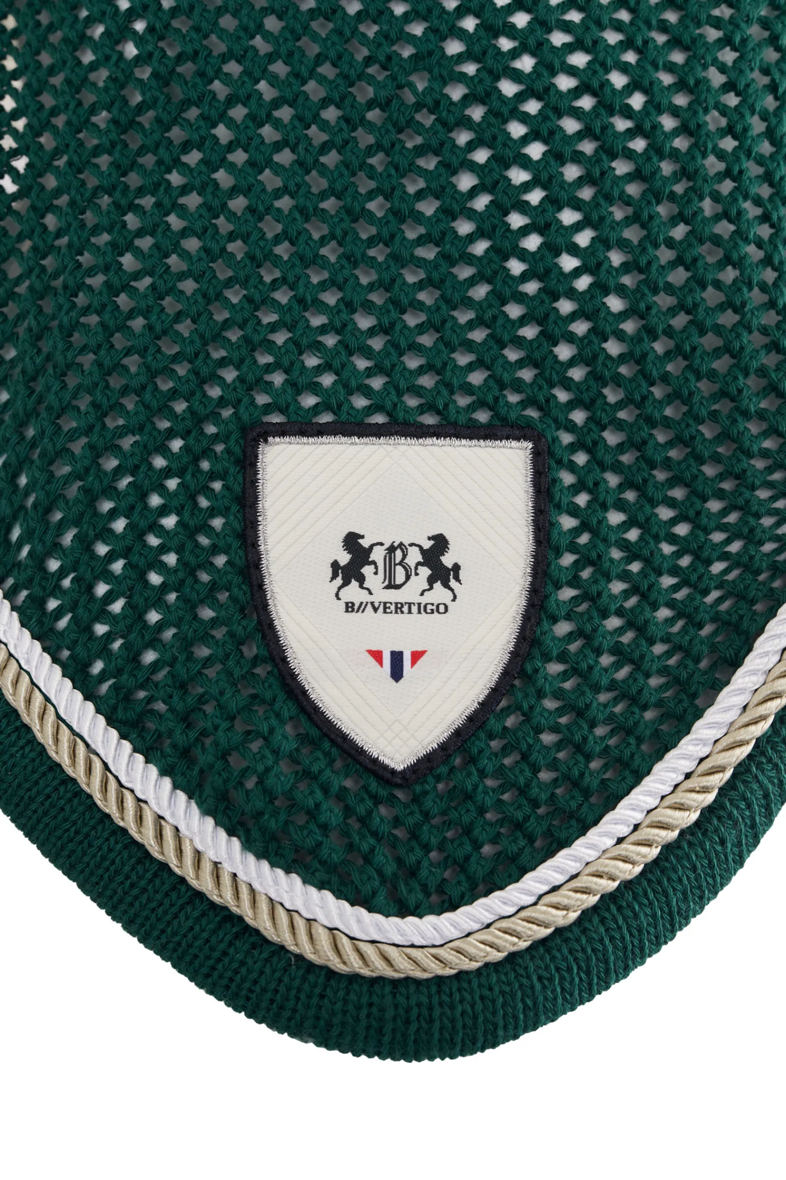 Klassinen, Virkattu Korvahuppu Joustavilla Korvilla. Korvien Coolmax-Materiaali Pitaa Hevosen Viileana Myos Helteisina Paivina. B Vertigo -Logomerkki Edessa Keskella.