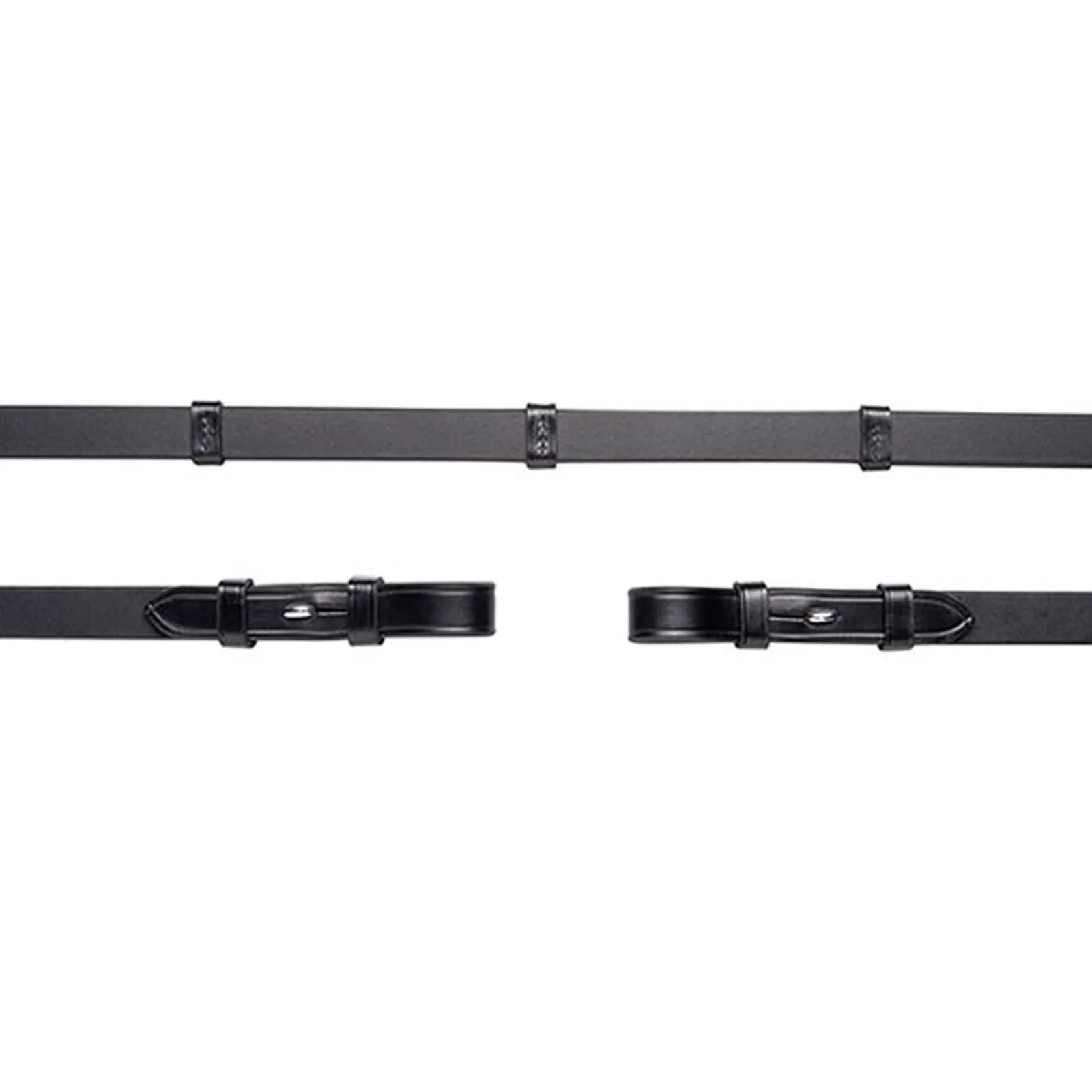 Nahkaohjat Stoppareilla Ja Kiinnityshakasilla. Ohjissa 5 Nahkaista Ohjastopparia. Ohjien Leveys 16 Mm.