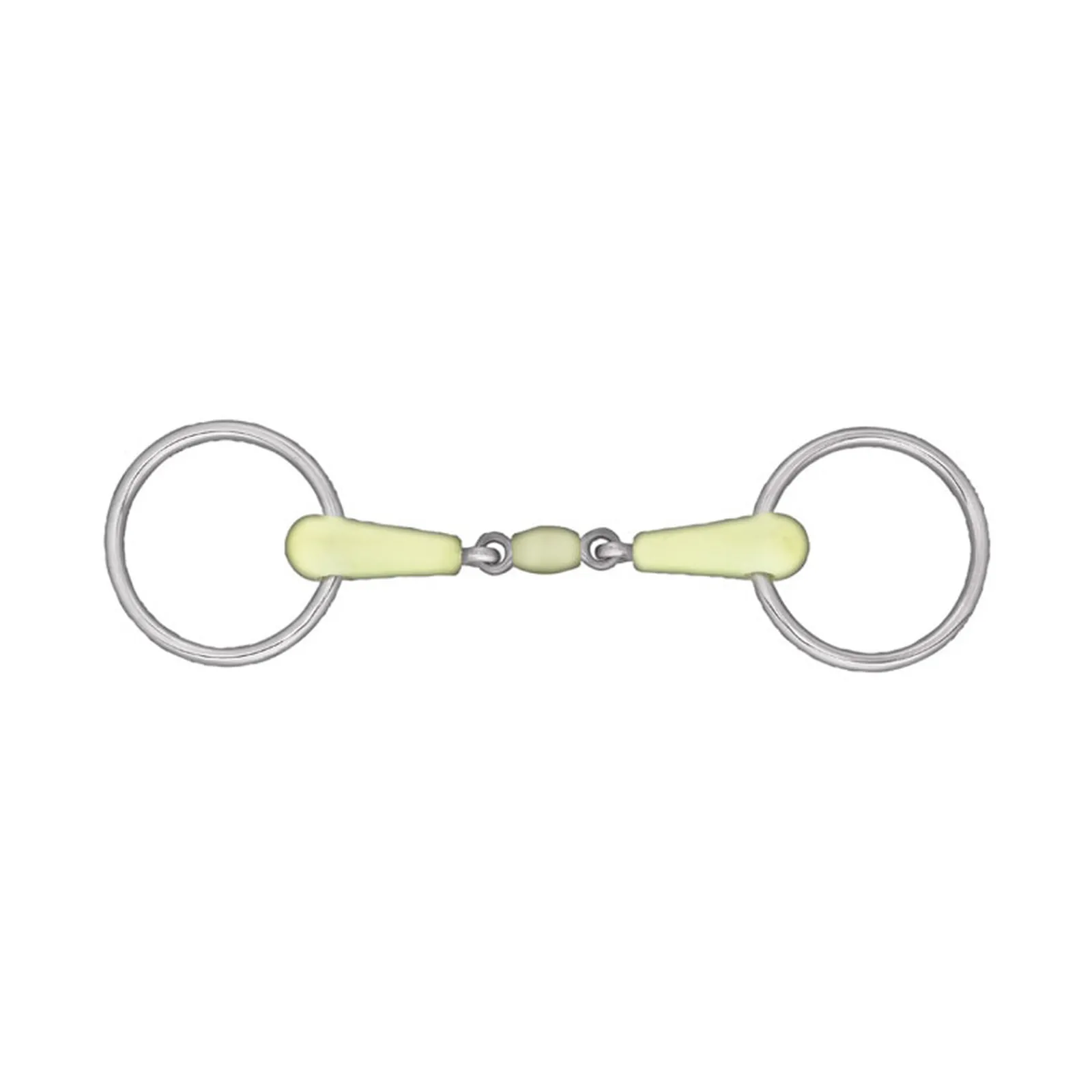 Tama *n Laadukas Kuolain On Pehmeampi Kuin Useammin Kaytetyt, Englantilaiset Nivelkuolaimet. Suosittu, Ruostumattomasta Teraksesta Ja Myrkyttomasta, Huipputeknologosesta Muovista Valmistettu Kuolain On Pehmea, Joustava, Hellavarainen Ja Miellyttava Hevosellesi. Kolmipalainen Suukappale Kohdistaa Erilliset Toiminnot Eri Puolille Hevosen Suuta. Ainutlaatuinen Omenan Tuoksu Auttaa Niin Nuoria, Kuin Vanhojakin Hevosia Hyvaksymaan Kuolaimet Paremmin. Tama Kuolain Ei Paina Hevosen Kitalakea Ja Se On Erinomainen Vaihtoehto Edistyneeseen Harjoitteluun, Seka Yksi Suosituimmista Kouluratsastuksessa Kaytetyista Kuolaintyypeista. Kuten Useimmissa Englantilaisissa Kuolaimissa, Ensisijainen Toiminto On Paineen Kohdistuminen Suupieliin. Yksinivelinen, Suukappale Aiheuttaa Pahkinansarkijaefektin, Eli Paine Kohdistuu Kieleen Ja Suun Ylaosaan. (V-Malli) Ylimaaraisten Nivelten Ansiosta Valtytaan Pahkinansarkijaefektilta, Silla Useammasta Kohdasta Nivelletty Kuolain Mukautuu Paremmin Hevosen U-Kirjaimen Muotoiseen Suuhun.