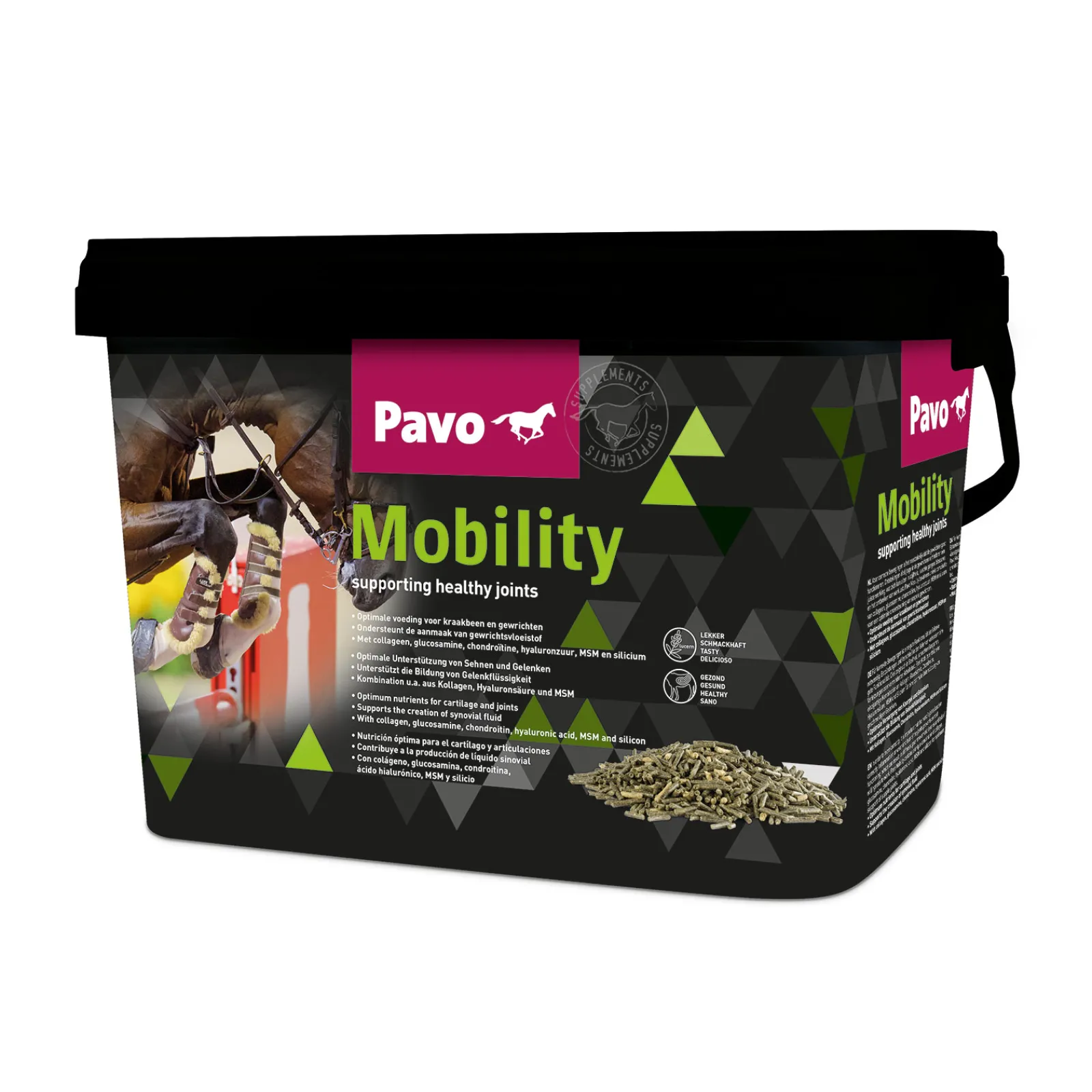 Pavo Mobility Contains Glucosamine And Hyaluronic Acid, Which Are Components Of Healthy Joint Fluid. Chondroitin And Msm (Sulphur) Also Have A Positive Influence On The Cartilage. But These Substances Alone Are Not Sufficient For Horses. The Most Important Thing Is The Special Collagen Contained In Pavo Mobility, Which Supports The Connective Tissue, Bones And Cartilage. It Also Contains Vitamin C And The Trace Element Silicon, Which Play An Important Role In The Formation Of Bone Tissue, Cartilage, Collagen And Hyaluronic Acid. Pavo Mobility Is Gluten-Free.