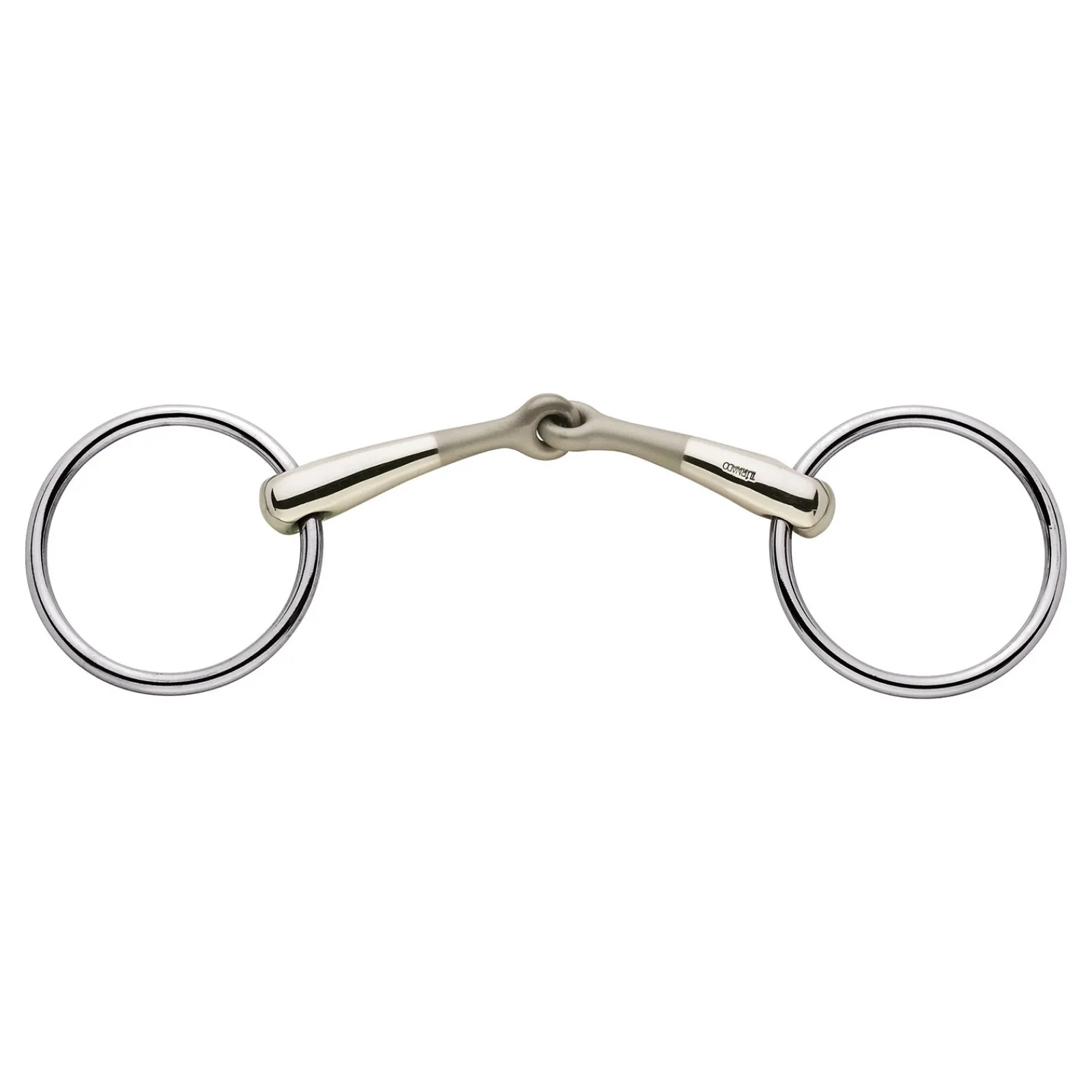 Turnado-Kuolain Esittelee Nivelkuolainten Uuden Sukupolven, Jossa Suuosaa On Taivutettu Eteenpain 45°.Tama Erityinen Taivutus On Merkitty Kevyella Hionnalla Keskipalassa. Toisin Kuin Tavanomaisessa Nivelkuolaimessa, Ohjat Ovat Hevosen Suuhun Tarkassa, Mutta Pehmeassa Kontaktissa, Joka Jakaa Paineen Tasaisesti Koko Kielen Alueelle.Turnado-Kuolain Mahdollistaa Taydellisen Kommunikaation Hevosen Kanssa, Koska Se Edistaa Nopeaa Ja Oikeanlaista Kuolaimen Pureskelua. Kuolain Auttaa Myos Ennaltaehkaisemaan Kielivirheita.